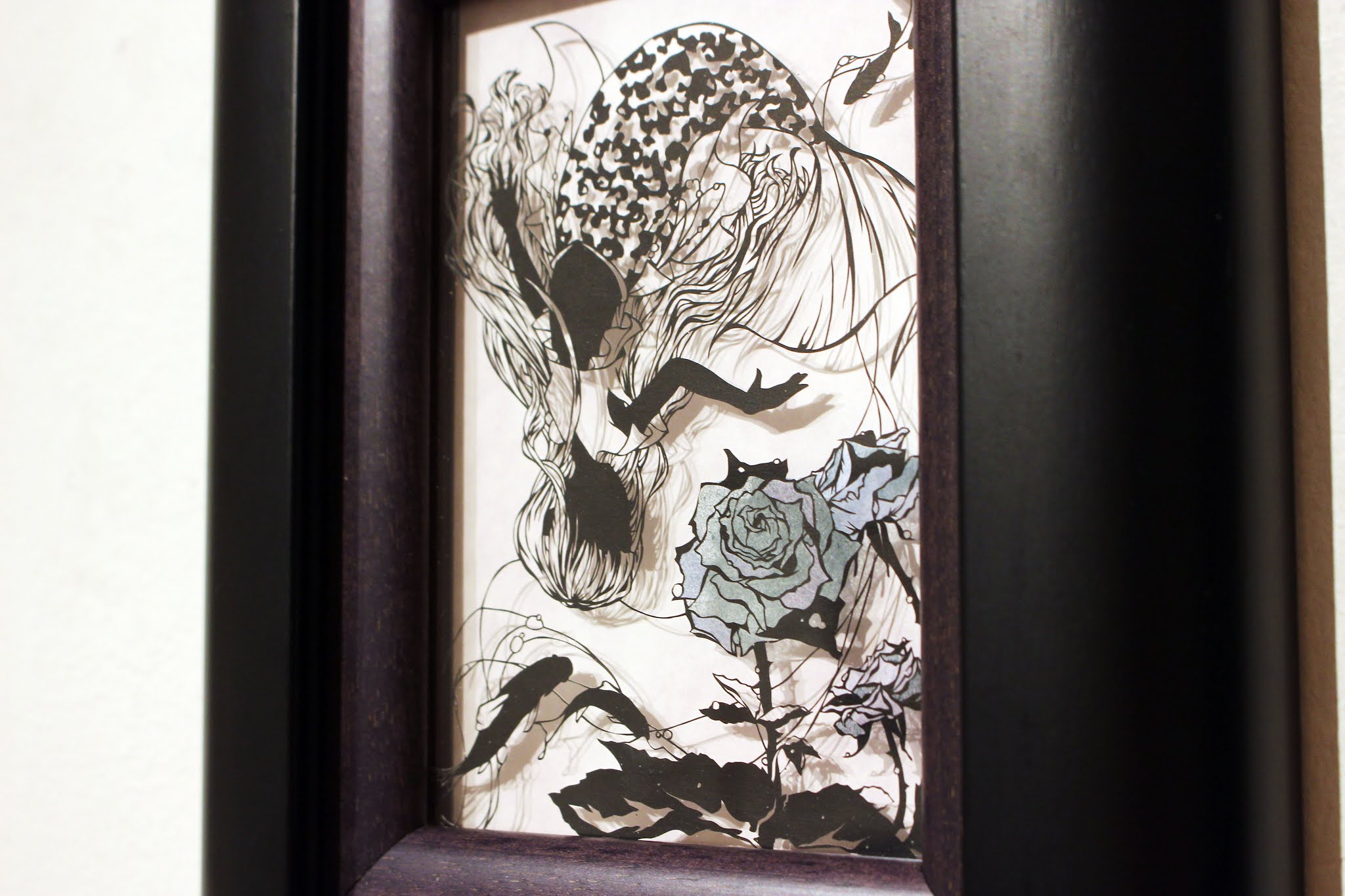 細い線と奥行きのある額装で繊細で生命力溢れる花の切り絵を制作している。
