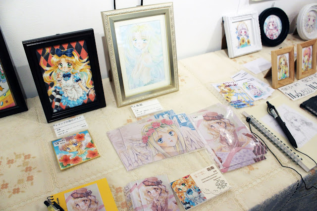 各作品はポストカードだったり額入りだったりといくつかの形がありますが、基本的には原画を含むイラスト類がメインです。