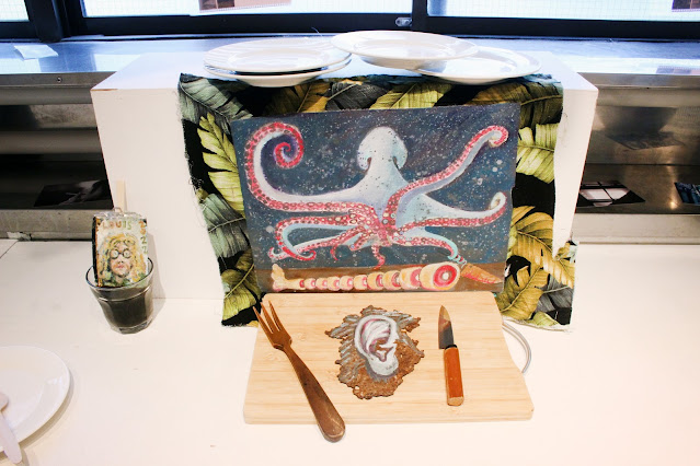 今回の展示では4人の作家が参加しており、写真から絵画立体まで様々な作品を楽しめます!また空間全体をうまく利用して展示しており、204号室にあるキッチンが素晴らしいアート空間になっていました。