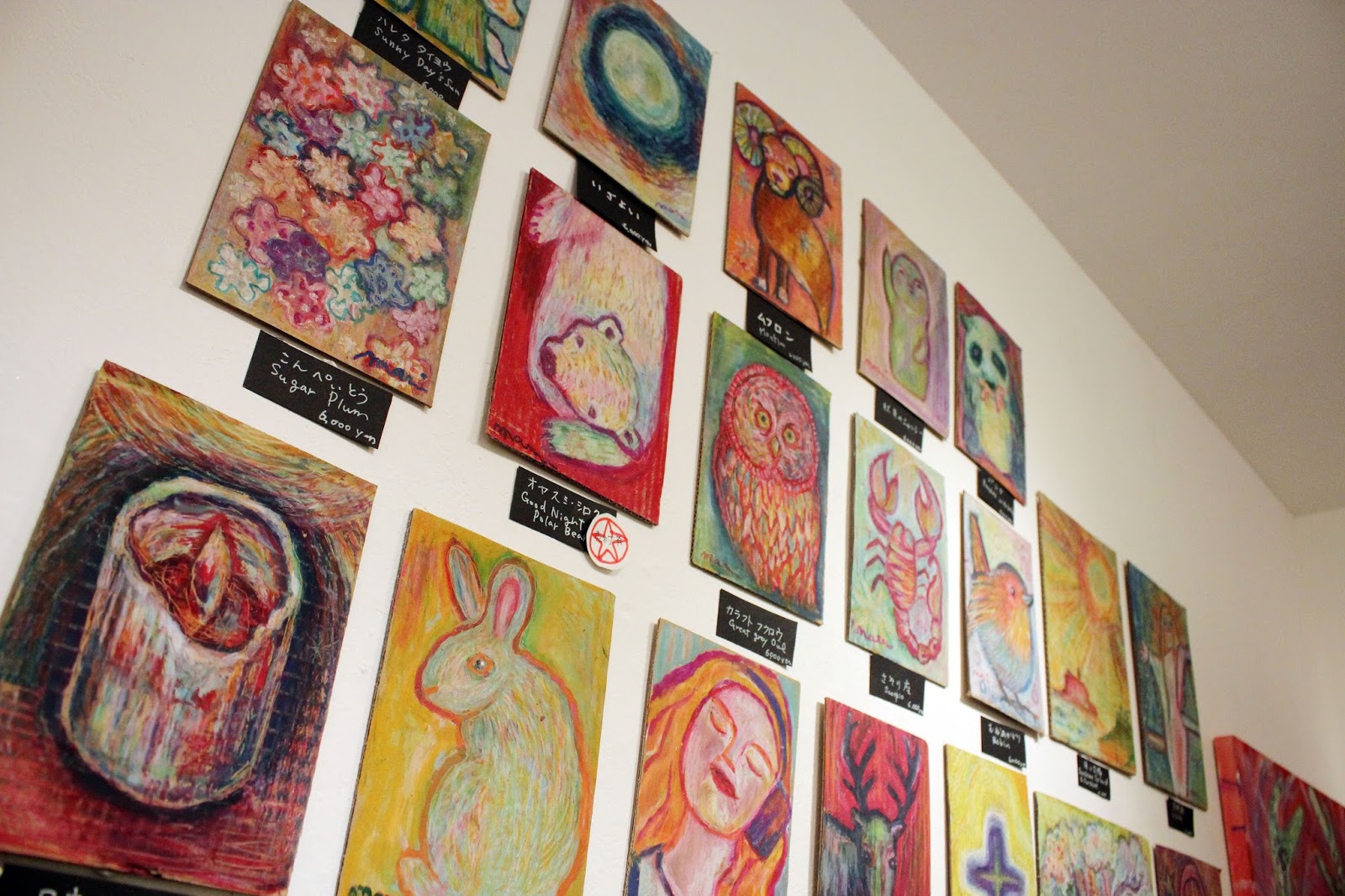 個展となる今回は、沢山のオリジナルクレヨン原画作品が展示販売されています。